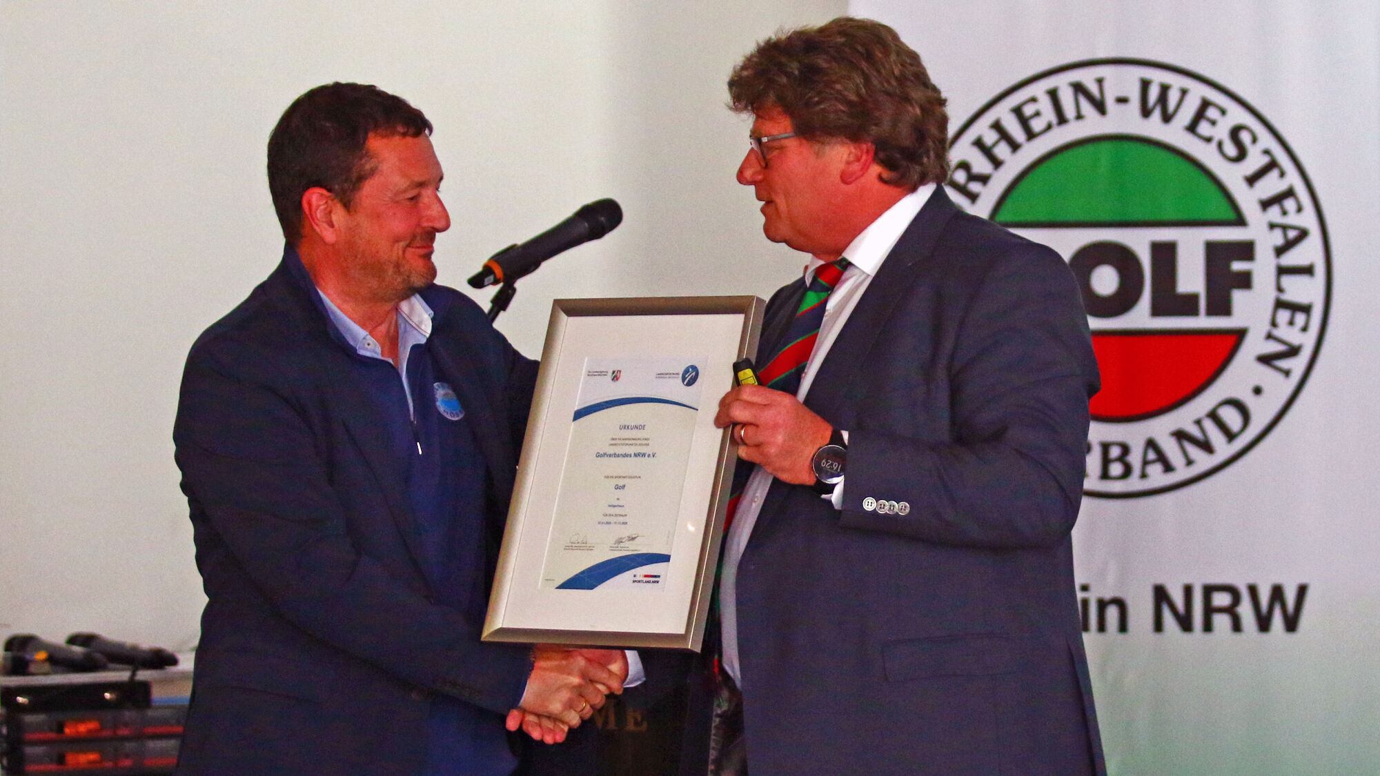 Geschäftsführer Uwe Born nahm die Urkunde im Namen des Golfclub Hösel entgegen.