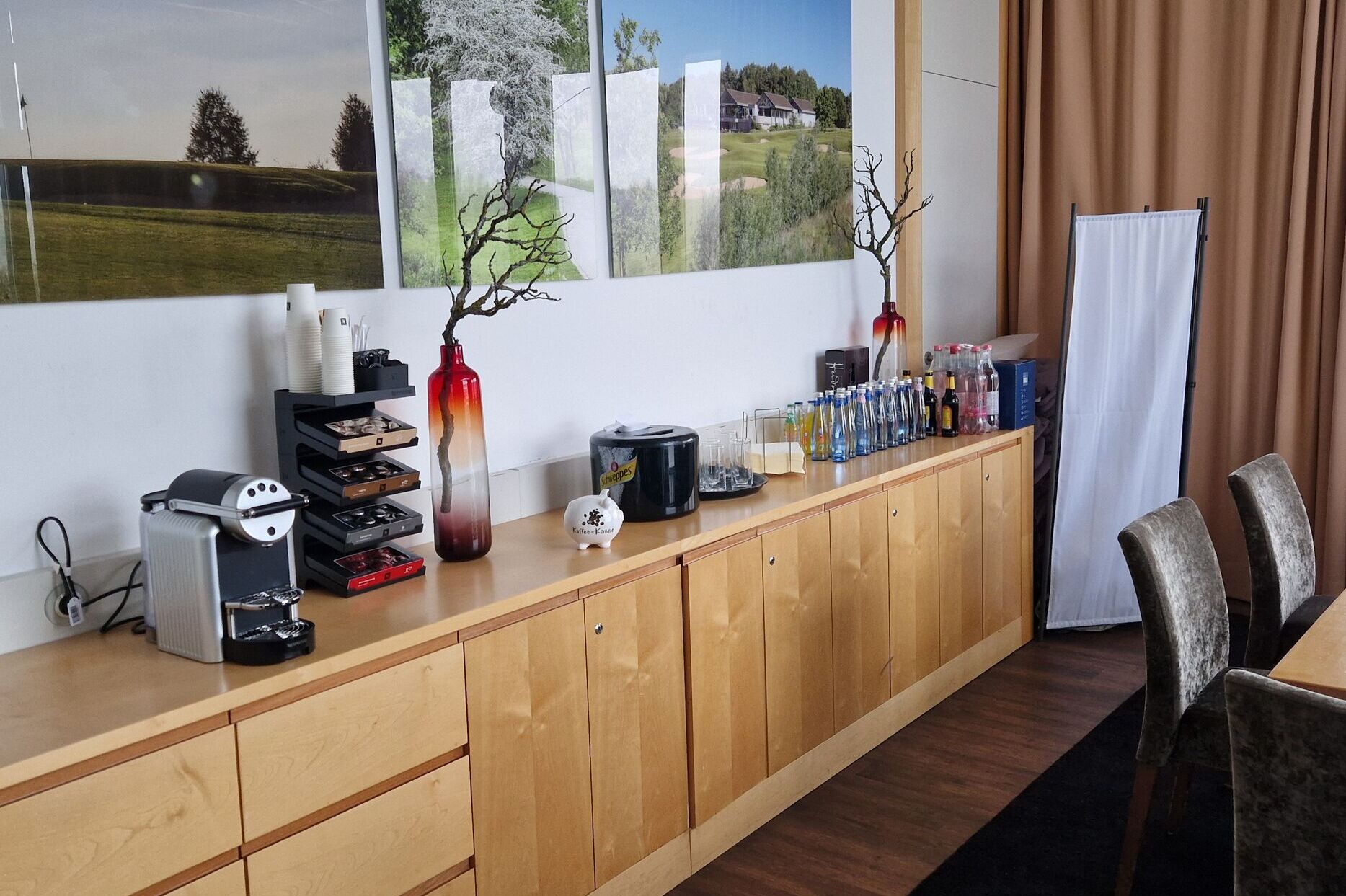 Bevor die Gastronomie am 01.03.2025 seine Pforten öffnet, haben Sie trotzdem die Möglichkeit, sich nach Ihrer Runde im Clubhaus aufzuhalten. Damit Sie nach der winterlichen Runde nicht "auf dem Trockenen" sitzen, stehen ab sofort im kleinen Raum (links in der Gastronomie) eine Nespresso-Maschine sowie diverse Getränke für Sie bereit.