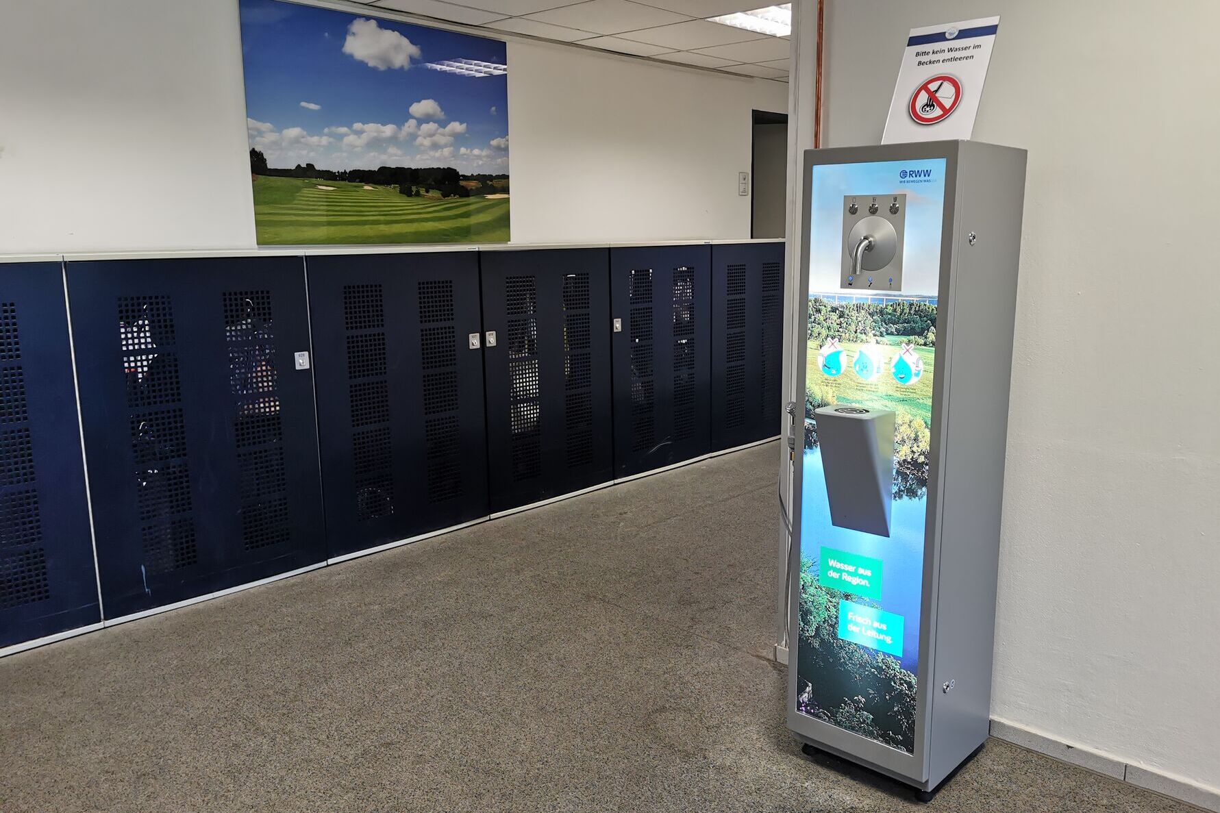 Mittlerweile hat ihn bestimmt jeder erblickt - unseren neuen Wasserspender im Foyer vor der Caddiehalle.