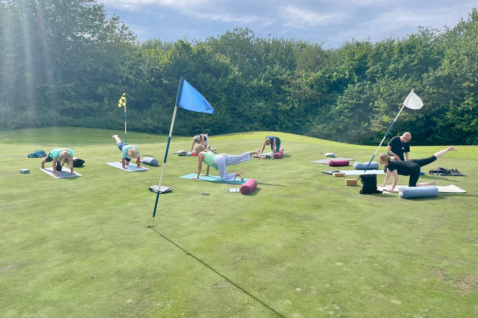 Jetzt in den Sommertagen nutzt z. B. die „Yoga-Gruppe“ auch die Schönheit und Natur auf unserer Anlage. Ansonsten trifft man sich wöchentlich im Fitnessraum. Unter der Anleitung von Pia Horn-Dreisilker dehnen und strecken Frauen und Herren ihre Muskeln und Bänder. Es gibt Kurse „Yoga Sanft“ als auch „Yoga-Sport“. Für viele nach einem anstrengenden Arbeitstag eine Wohltat, für andere auch eine gute Ergänzung zum Golfsport. Bewegung tut uns allen gut - das ist bekannt. Bewegung unter Anleitung und in der Gruppe ist am besten und macht Spaß. Suchen Sie sich Ihre Fitness-Gruppe aus. Der Golfclub Hösel bietet einige an. Machen und halten Sie sich durch viel Bewegung unterschiedlichster Art fit und gesund. |