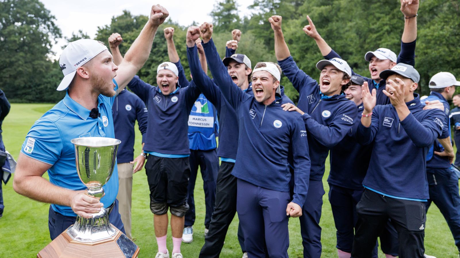 Mit einem Putt zum Birdie gewann Jannik de Bruyn sein Match gegen Laurenz Meifels. Damit stand es 7,5:4,5 für die Höseler und der Titel des Deutschen Mannschaftsmeisters war gewonnen!